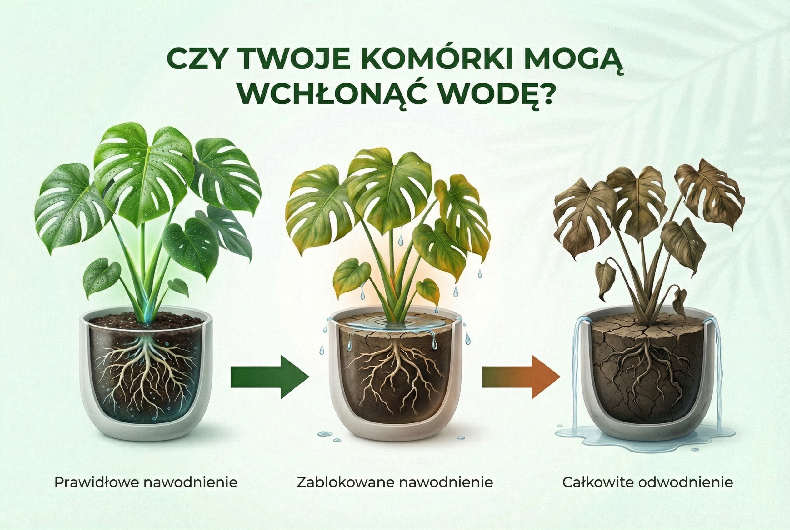 Tak jak roślina bez prawidłowego nawodnienia usycha – mimo codziennego podlewania – twoje komórki mogą być "spragnione" mimo picia litrów wody.