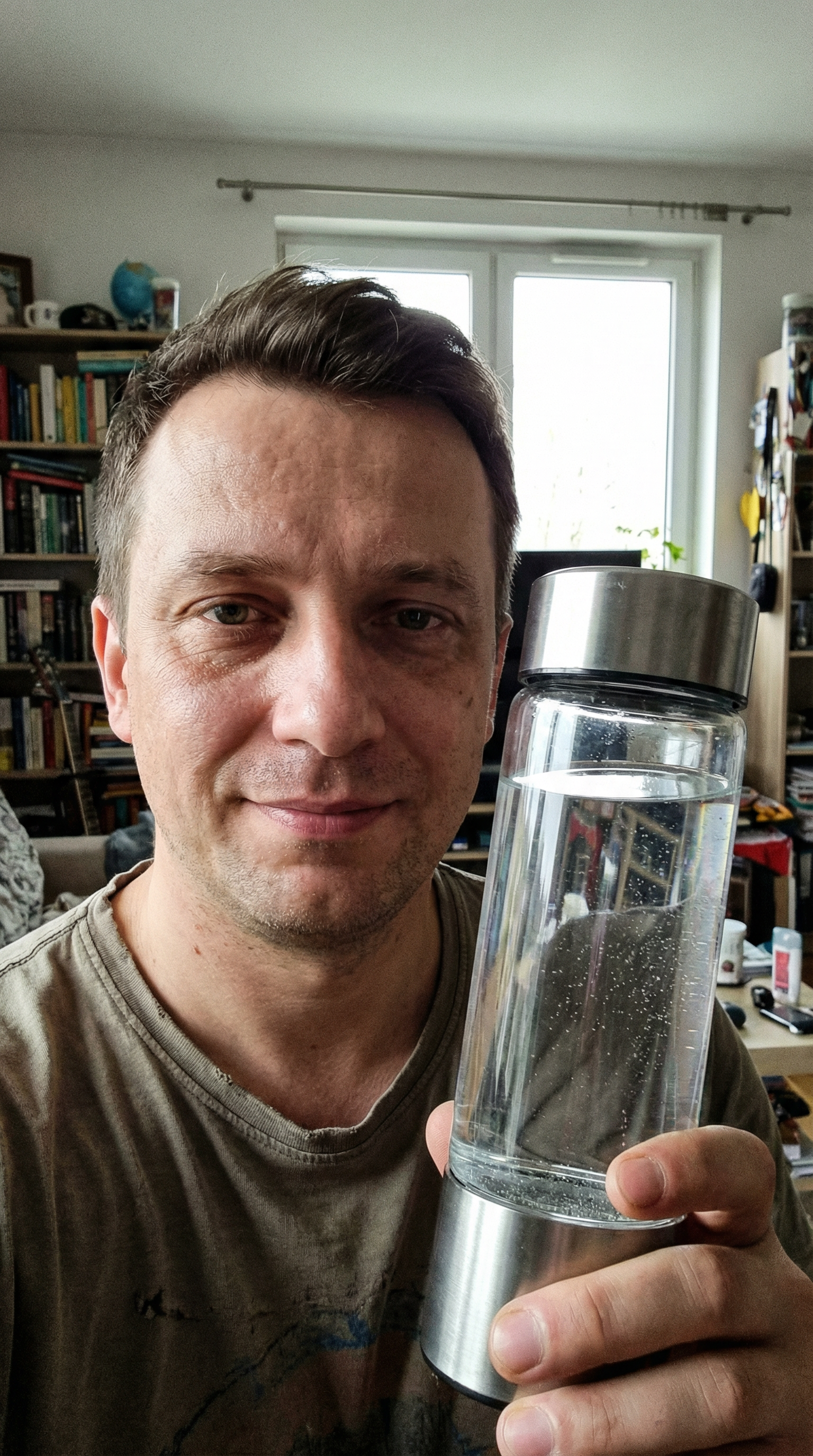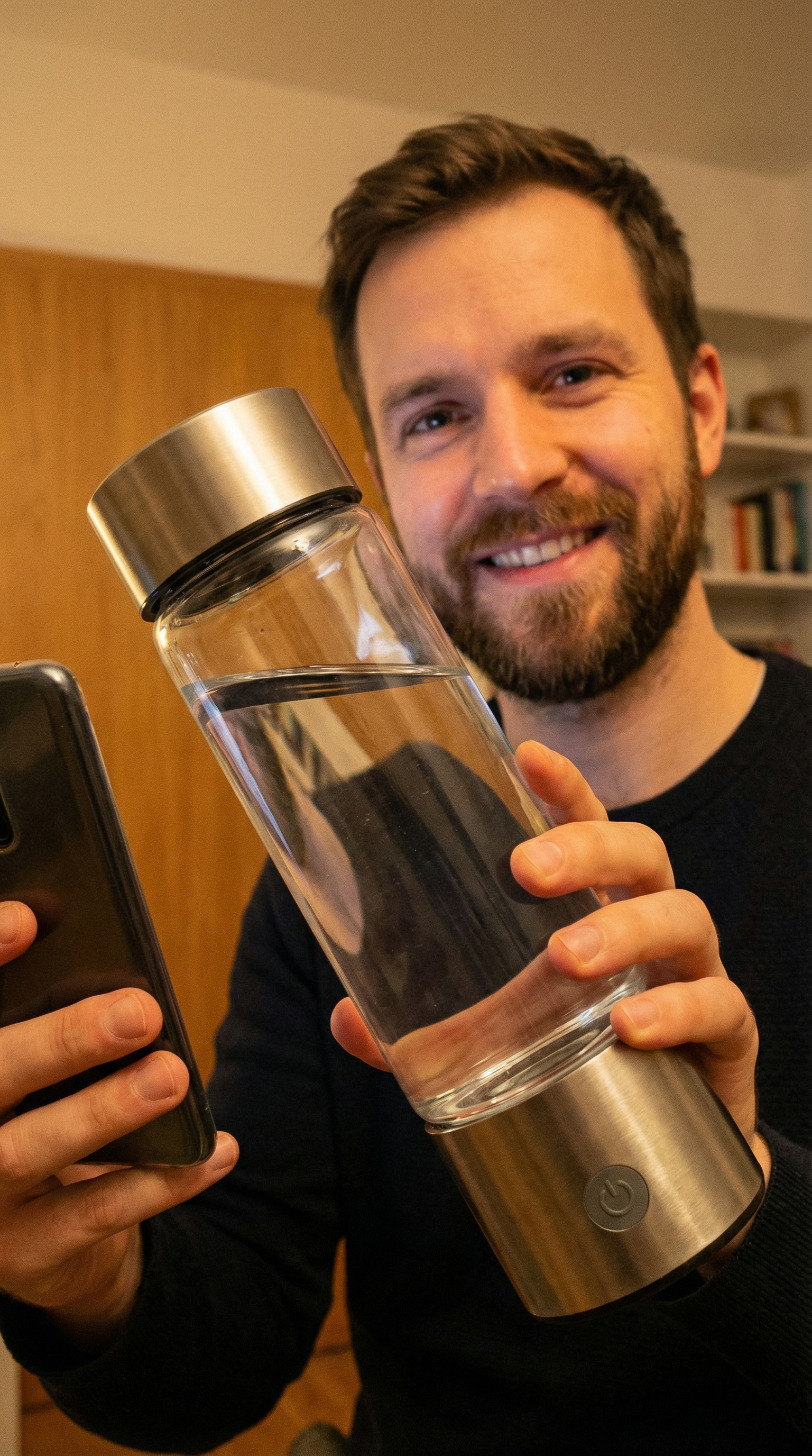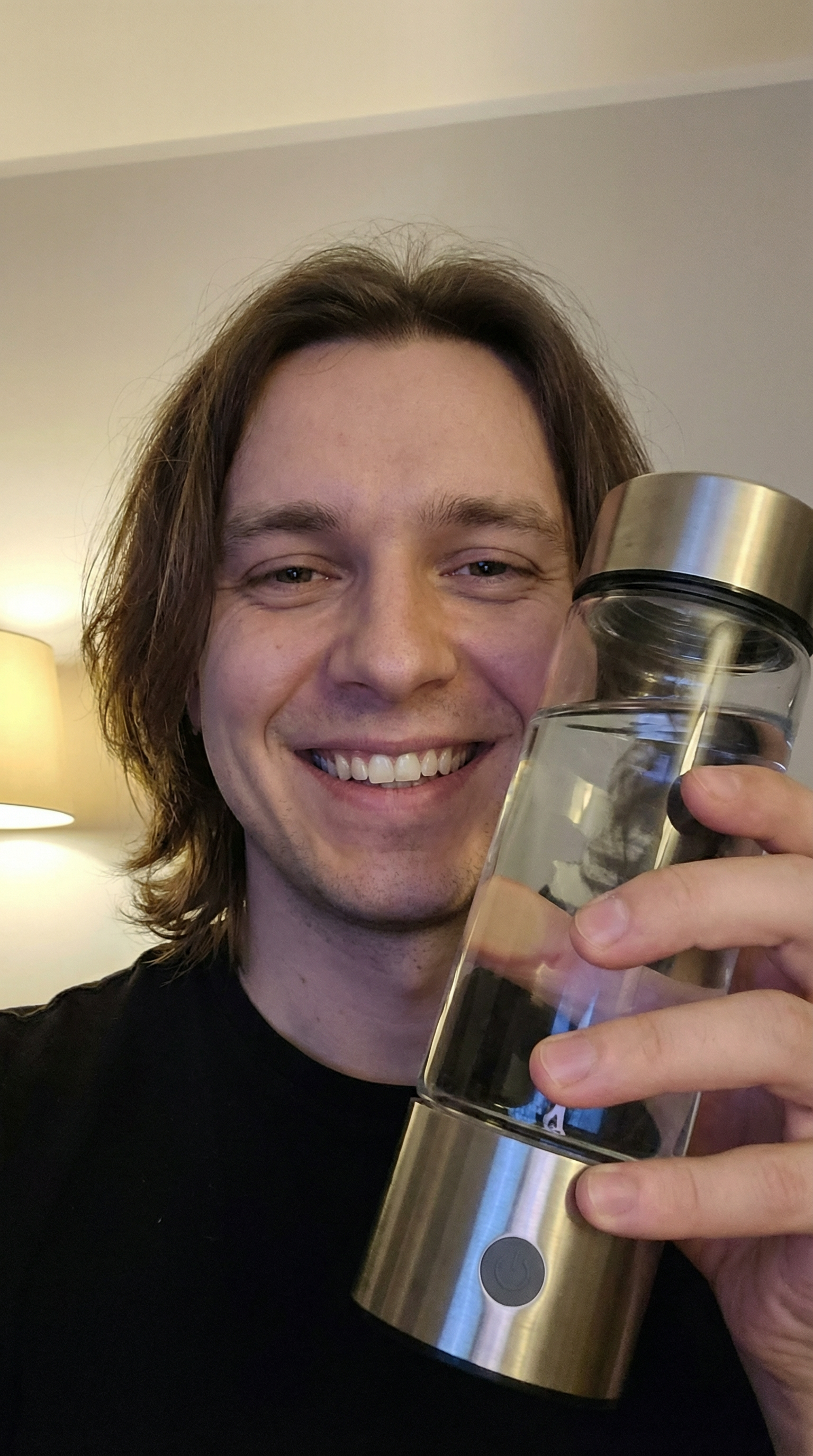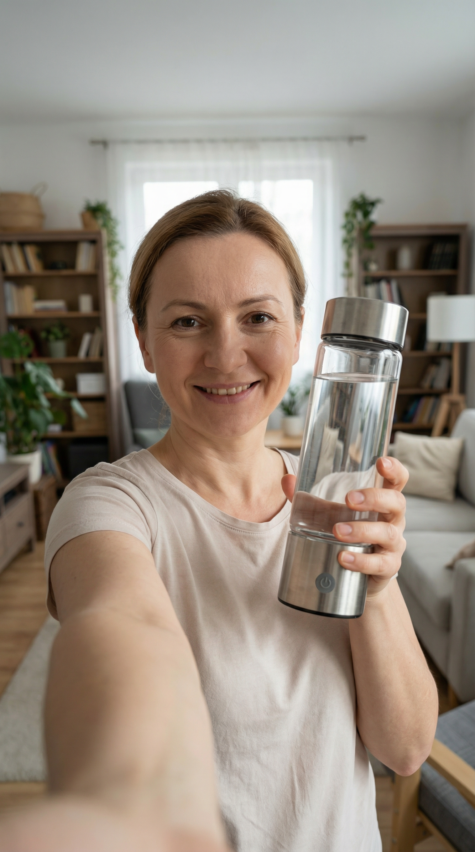 Żadnych wizyt w klinikach. Żadnych drogich urządzeń. Po prostu nalewasz wodę, naciskasz przycisk... i masz wodę wodorową gotową do picia.